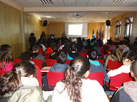 Hoje todas as turmas do 8º Ano estiveram no Auditório da Escola para uma sensibilização à temática apresentado pelo Chefe Ezequiel.