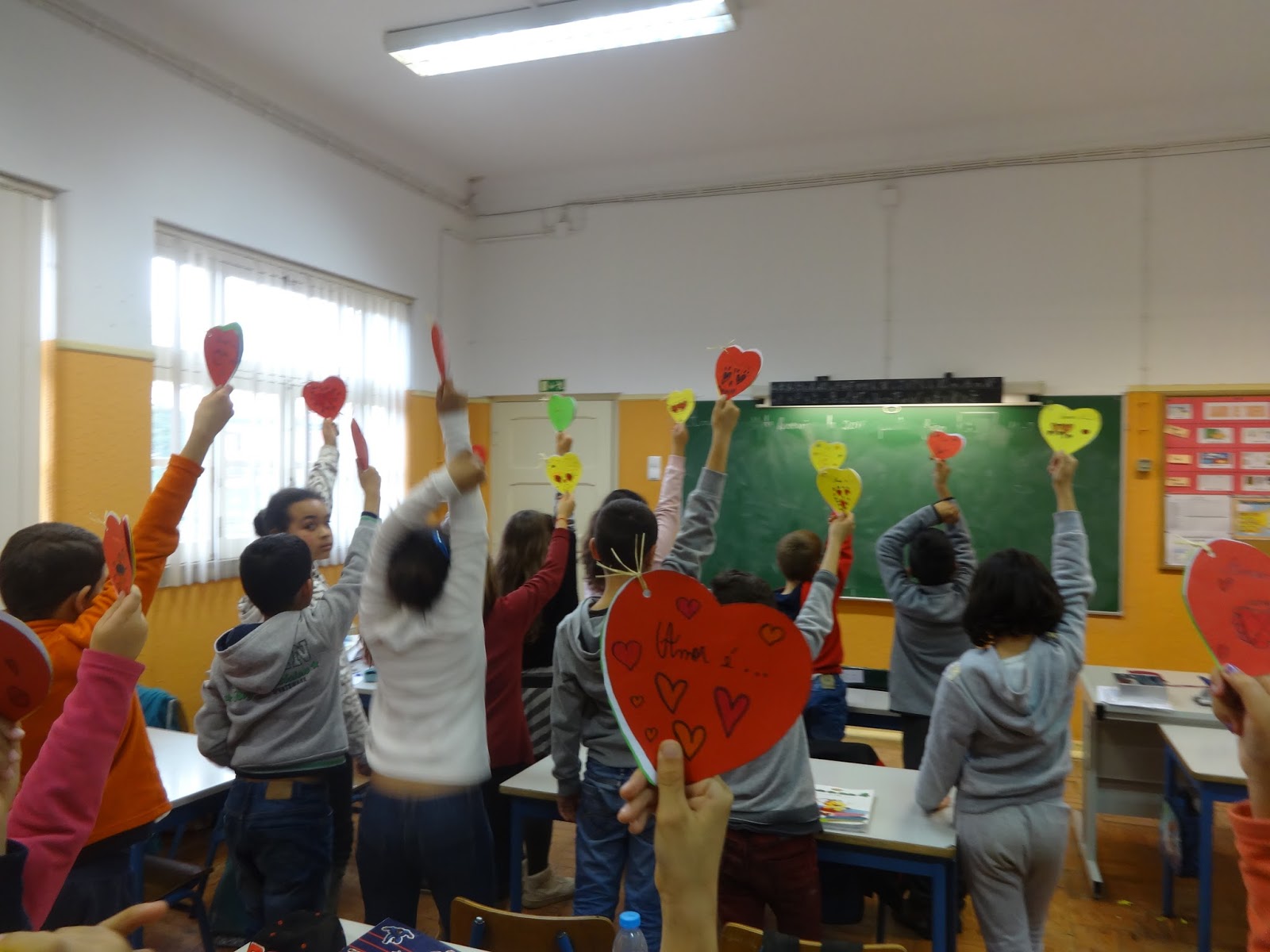 O ateliê realizado pela Biblioteca hoje à tarde com o 4ºA da Arrentela, visou a partilha pela turma do que é o Amor.